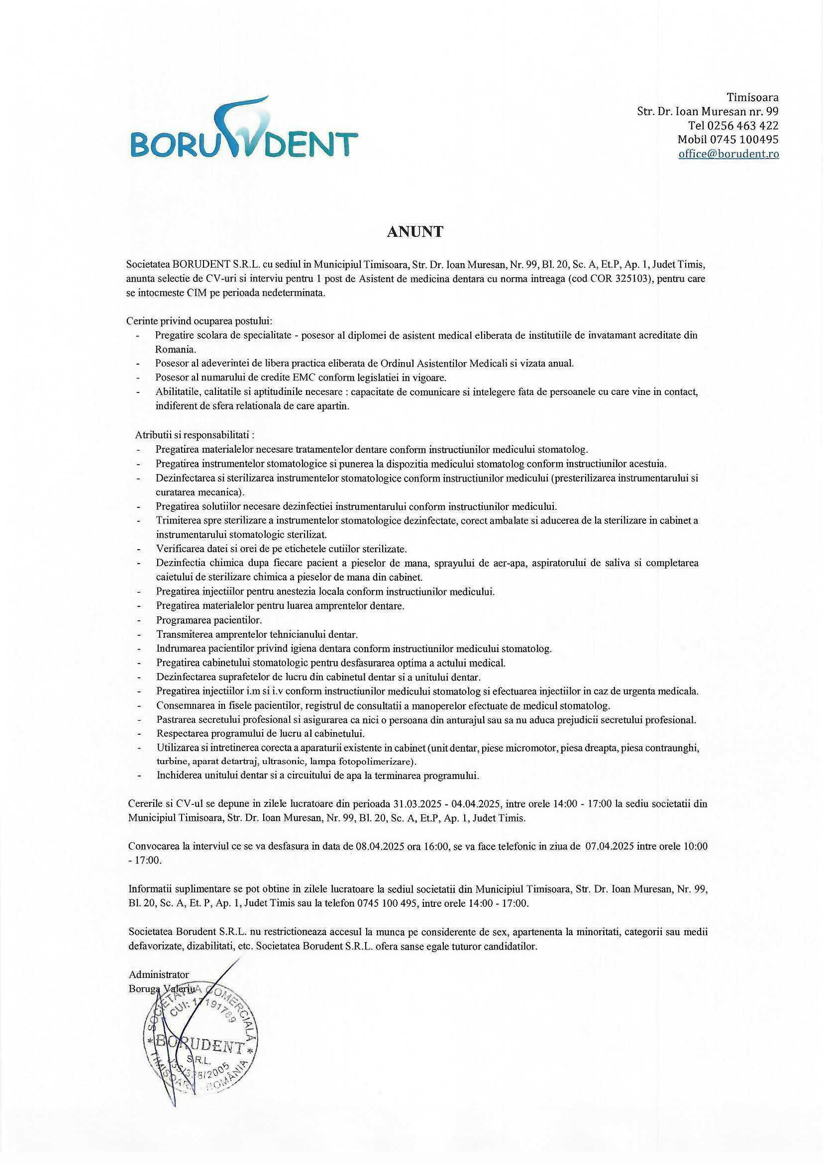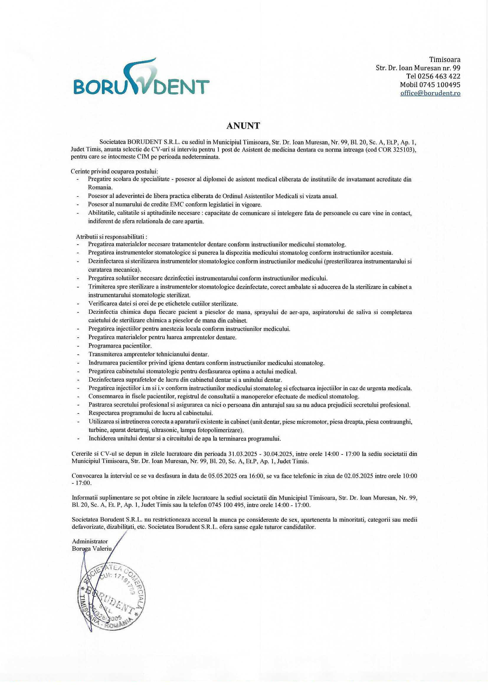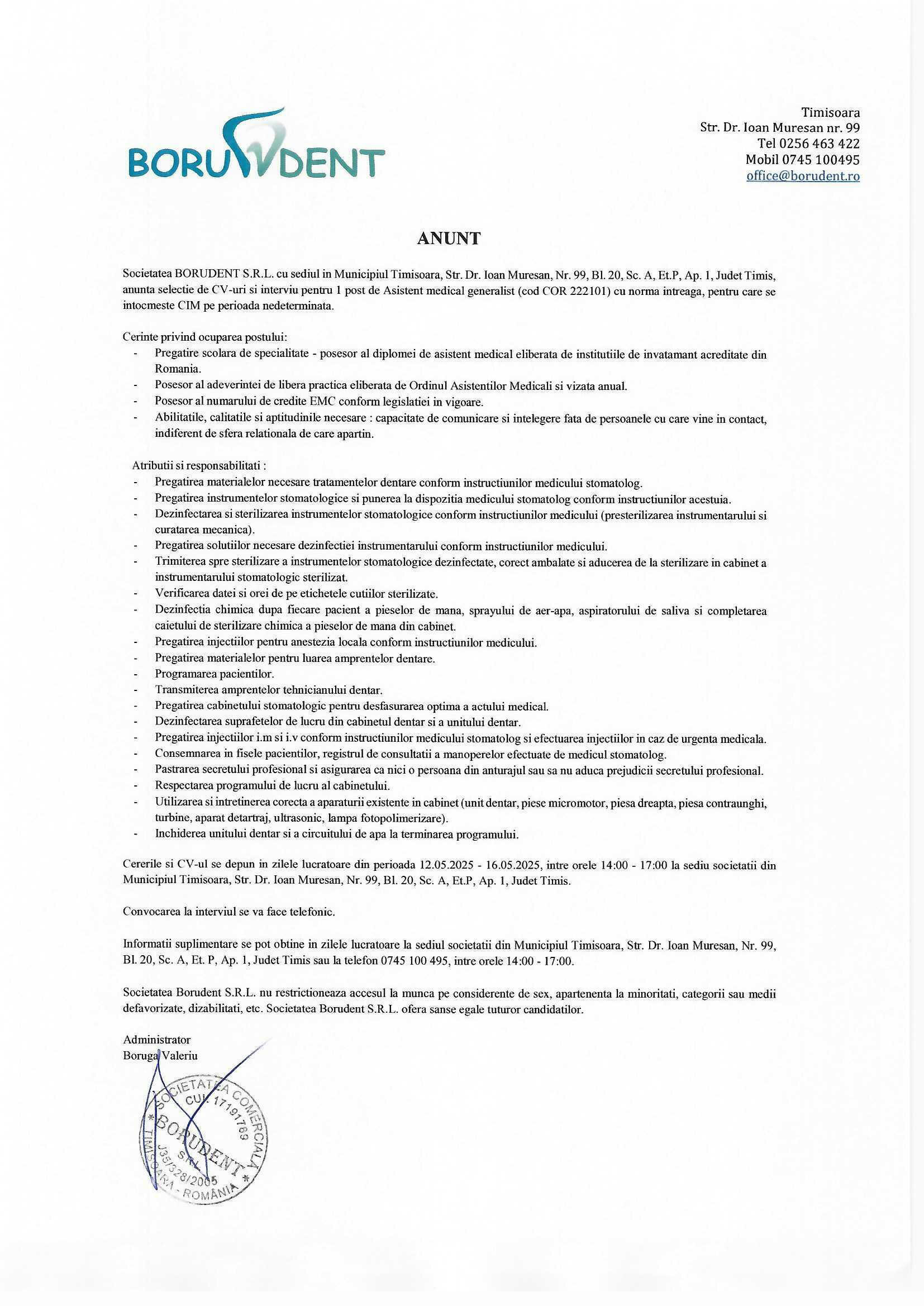 Borudent este operator de date personale.